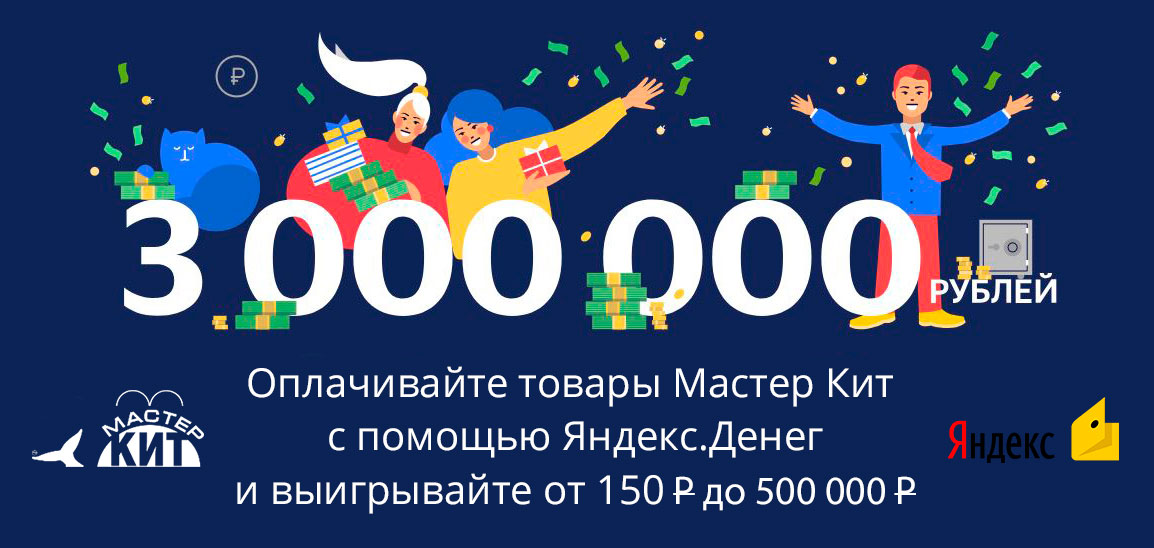 Оплачивайте товары Мастер Кит Яндекс.Деньгами и выигрывайте от 150 до 500 000!