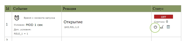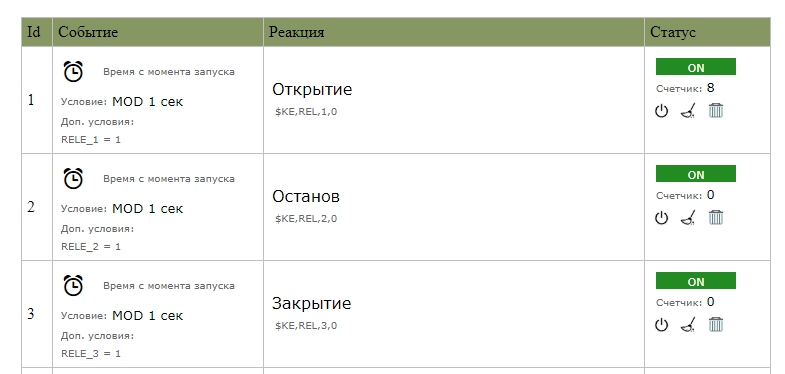 По аналогии создадим логические правила для автоматического "выключения" 2-го и 3-го реле (Останов ворот и их закрытие).