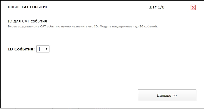 На первом шаге соглашаемся с предложенным идентификатором события (ID). Нажимаем кнопку "Далее".