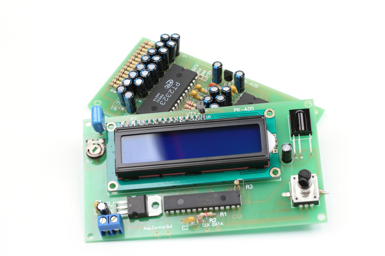 Блок обработки сигнала построен на двух специализированных микросхемах: PT2323 и PT2322.