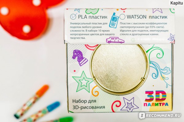 По-моему, собрание разноцветного пластика для 3D ручки в подобную палитру - это гениально. Все цвета сразу под рукой, пластик не перепутается, твори без проблем! Да и сам PLA пластик оказался качественным. И как финальный штрих ко всей крутости 3D-палитр Даджет - это возможность хранить саму 3D ручку и зарядку к ней внутри колбы, которая занимает центральную часть коробочки с палитрой: