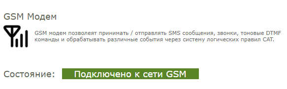 Далее, выбираем AUTO режим работы GSM модема - т.е. при наличии установленной SIM карты и коректном PIN коде модуль будет всегда пытаться выйти в сеть GSM и зарегестрироваться в ней что бы быть готовым к приему входящих SMS и звонков с управляющими командами а так же иметь возможность отправть SMS или совершить звонок в случае срабатывания логического правила CAT.