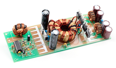 Этот набор для самостоятельной пайки представляет собой мощный DC-DC преобразователь, построенный по схеме "PUSH-PULL". Преобразователь позволяет работать с нагрузкой общей мощностью до 200Вт. Он построен на микросхеме ШИМ-контроллера SG3525, которая преобразовывает постоянное входное напряжение в переменное напряжение высокой частоты. В качестве источника питания модуля может выступать напряжение, подаваемое с автомобильного генератора или аккумулятора. Таким образом , можно обеспечить автономное питание звукоусилительной техники там, где нет стационарных источников электроэнергии.