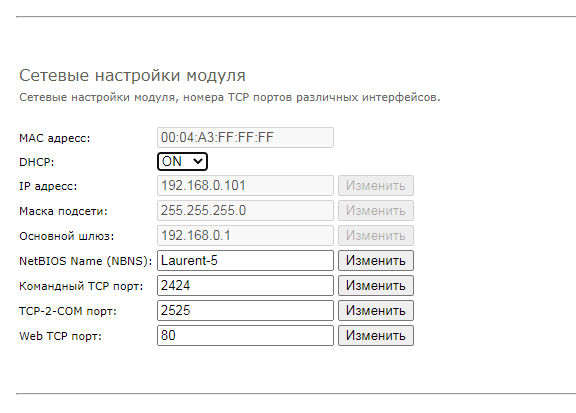 Как узнать какой IP получил модуль через DHCP в новой сети? Для этого удобно воспользоваться NetBIOIS Name который по умолчанию равен “Laurent-5” (см. Сетевые настройки выше).