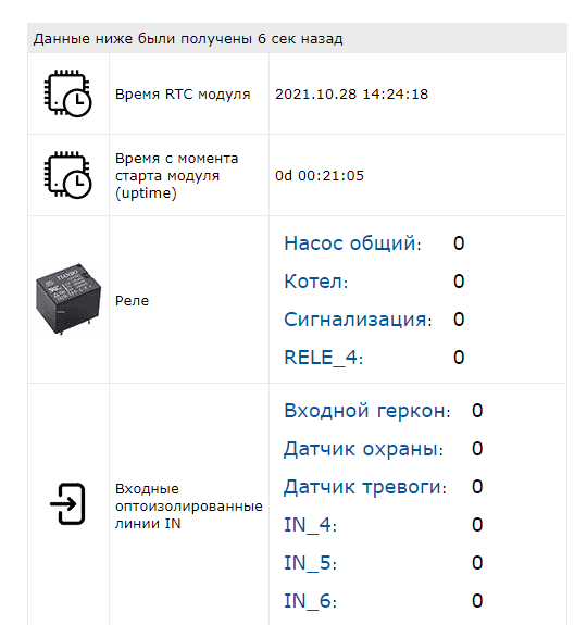 При этом в интерфейсе Облака мы сможем увидеть изменение состояния реле только на следующем подключении к Облаку (при подключении к серверу модуль сначала передает текущие показания датчиков, затем Облако в ответ может переслать команды управления. На этом текущий сеанс связи заканчивается). На следующем сеансе связи мы увидим изменение состояния 2-го и 3-его реле.