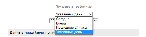 Если нажать на имя аппаратного ресурса можно построить график изменения показаний / состояния датчика. По умолчанию, график строится на текущий день.