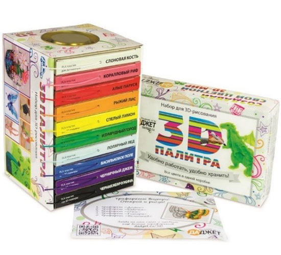 | Даджет придумал систему модульных кассет. В них пластик хранится аккуратно, и не путается, а менять цвета стало просто и удобно. |