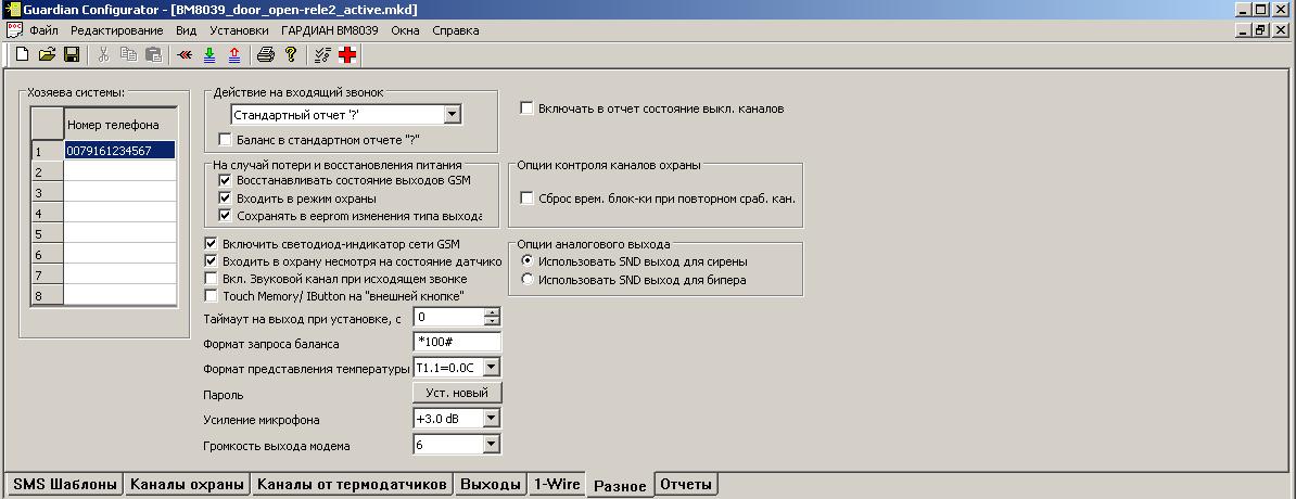 - Каждый оператор имеет свой номер для запроса баланса, поэтому только в случае замены СИМ карты другого опратора требуется изменить номер запроса баланса в Конфигураторе на вкладке "Разное".