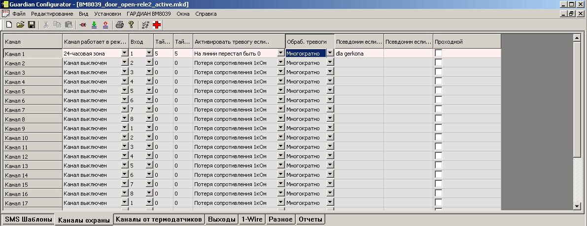 Настройка BM8039_BM8069D_smok_move.mkd системы охраны для подключения неограниченного количества датчиков дыма на вход BM8069D согласно фото ниже