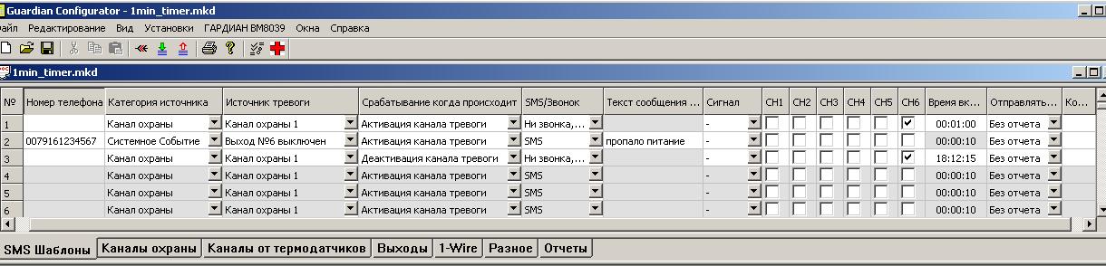По сигналу от одного из датчиков устройство может отправить одно и то же СМС с заранее заготовленным текстом 256 пользователям. Для этого нужно запоkнить все 256 строк Конфигуратора одним и тем же СМС с заранее заданным текстом и 256 разными телефонными номерами. При этом система будет их отправлять по очереди в порядке их записи.