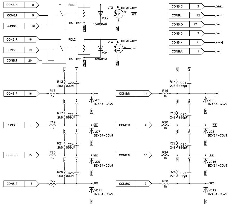 8 - Выход 4 TTL +5В/20мА для управления внешним ключом с реле