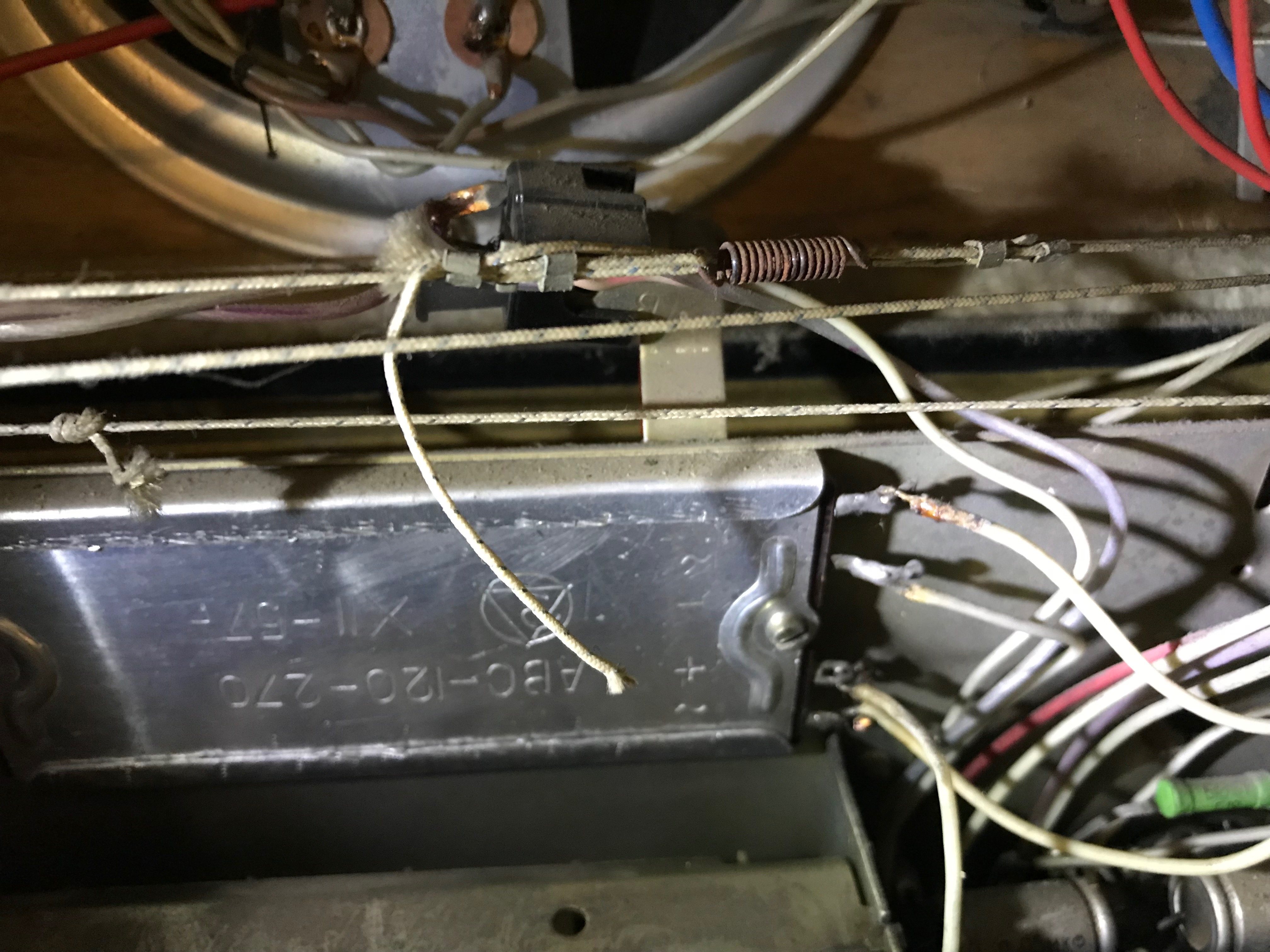 Корпус и электроника сохранились хорошо. В магнитоле перегорел силовой трансформатор питания вследствие выхода из строя селенового выпрямителя АВС 120-270, который был заменен на диодную сборку KBU10J (DK0069). Перегоревший трансформатор заменен на унифицированный ТАН – 51-127-220-50. Контакты почищены средством Контакт 60 и смазаны. Механизм переключения и механика смазаны силиконовой смазкой. Пыль по возможности предварительно удалена пылесосом. Для уменьшения фона в блок питания магнитолы был установлен дополнительный конденсатор на 470 мкф (DK0092).