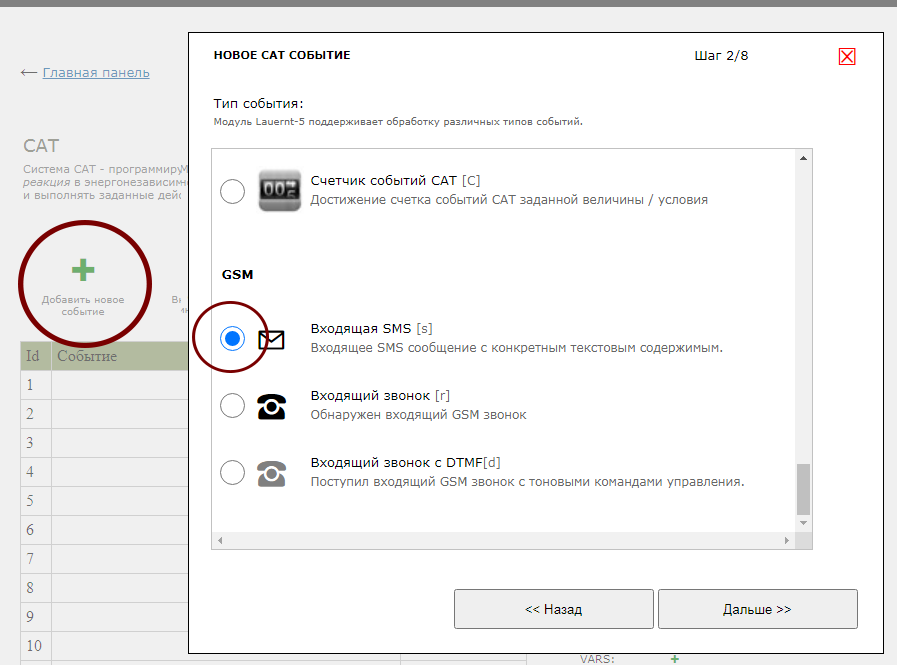 Задачу решим с помощью одного CAT события (программируемая логика). Но первым делом, настроим модуль MP718m Laurent-5G для работы в сети GSM.