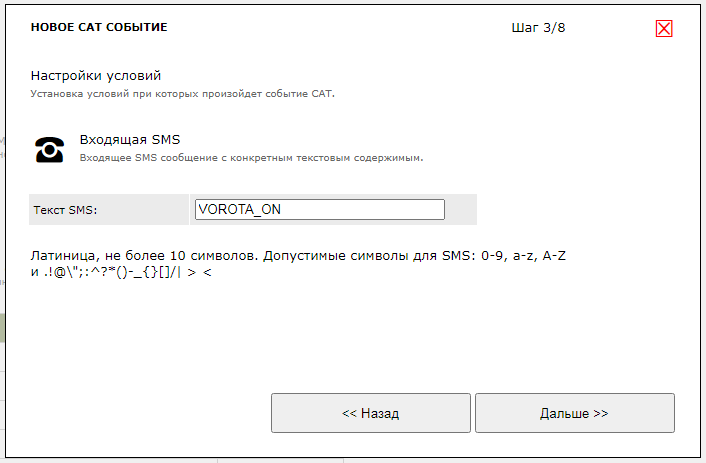 Теперь сформируем правило CAT по входящей SMS с некоторым конкретным текстом. Модуль, приняв такую SMS, выполнит управление реле и отправит в ответ обратную SMS в которой с помощью динамических переменных мы подставим текущее состояние реле (после операции управления).