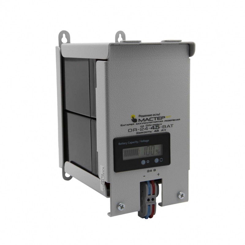 DR-24-4.5-BAT представляет собой резервную батарею (энергоаккумулятор) напряжением 24В c максимальным рабочим током 4.5А.