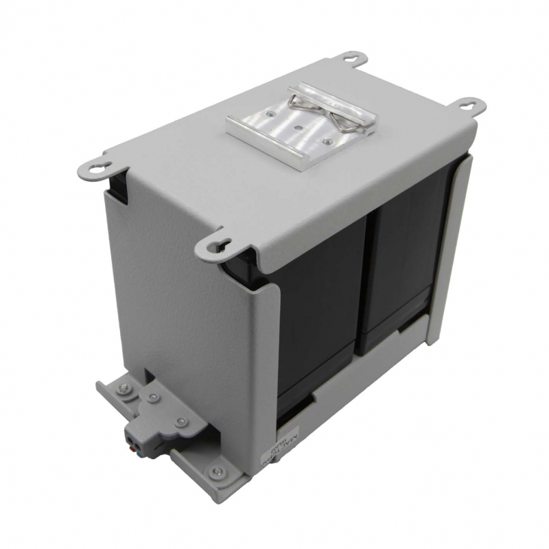 Резервный источник питания смонтирован в металлическим корпусе и может крепиться на DIN-рейку, а также на любую плоскую поверхность с помощью винтов.