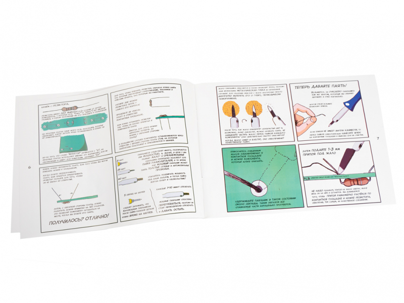 Внутри набора также присутствует особый свиток знаний — проводник в мир пайки. Пергамент наполнен наглядными иллюстрациями и чёткими наставлениями, чтобы уберечь вас от типичных ошибок, подстерегающих тех, кто впервые берёт в руки паяльник без поддержки мудрых источников.