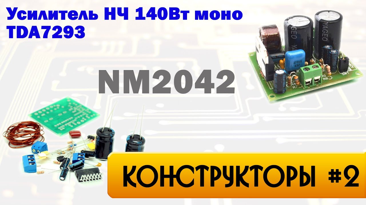 Набор для сборки своими руками Hi-Fi усилителя звука класса AB. Представляет собой простой и надежный одноканальный усилитель нч на микросхеме TDA7293. Воспроизводит весь спектр частот (ВЧ, СЧ, НЧ). NM2042 обладает минимальным коэффициентом нелинейных искажений и уровнем собственных шумов, широким диапазоном питающих напряжений и сопротивлений нагрузки. Имеет компактные габариты. Этот легкий и качественный усилитель Hi-Fi уровня подойдет для динамиков и колонок, у которых высокая номинальная мощность. Также этот УНЧ можно использовать для изготовления сабвуфера при установке дополнительного фильтра низких частот. В случае использования усилителя для воспроизведения всей полосы частот рекомендуем использовать темброблок, это позволит добавить звуку окраски на низких и высоких частотах. Этот усилитель звука можно использовать как дома, в составе мультимедийного центра, так и в автомобиле. Для удобства подключения питающего напряжения и нагрузки, на плате установлены клеммы с винтовыми зажимами под отвертку.