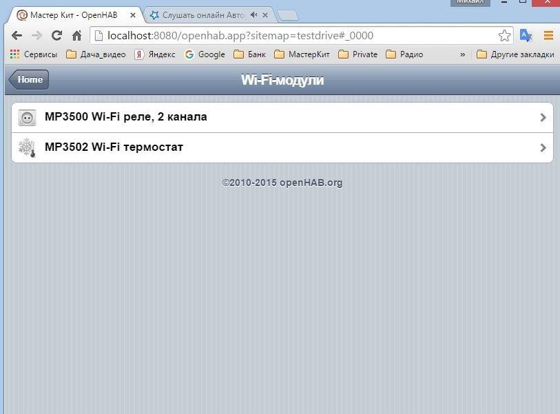 А вот на второй странице появился новый раздел MP3502 Wi-Fi термостат, при этом содержимое файла testdrive.sitemap я не трогал.
